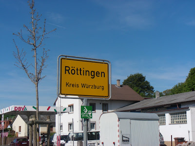 Arriving in Rothenburg. OK, interesting fact about Germany, when you see a sign like this, you must slow to 50Kilometers an hour or what is otherwise posted. Every town no matter how small or big will always have a town sign at every entrance.